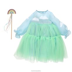 ten uroczy kostium chmurki jest idealny dla dzieci, które uwielbiają marzyć i cieszyć się pomysłową zabawą. jest pięknie wykonana z zielonego tiulu i niebieskiej organzy, z detalami w postaci białych chmurek. jest wyposażony w tęczową różdżkę do rzucania zaklęć szczęścia.