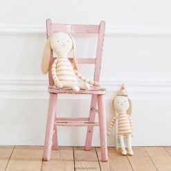 Króliczek lucerna jest naprawdę uroczy i idealny do przytulania i zabawy. wykonany z dzianiny z bawełny organicznej, z opadającymi uszami, słodkimi szwami i bezczelnym pomponowym ogonkiem.