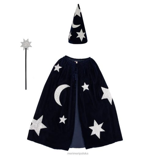 Połączenie luksusowego niebieskiego aksamitu ze srebrnymi, brokatowymi gwiazdkami i księżycami sprawia, że ten kostium jest wyjątkowy. po prostu owiń pelerynę, załóż kapelusz i machaj różdżką z gwiazdą, aby w ciągu kilku sekund wyglądać jak czarodziej. idealnie nadaje się na imprezy lub do zabawy wyobraźnią.