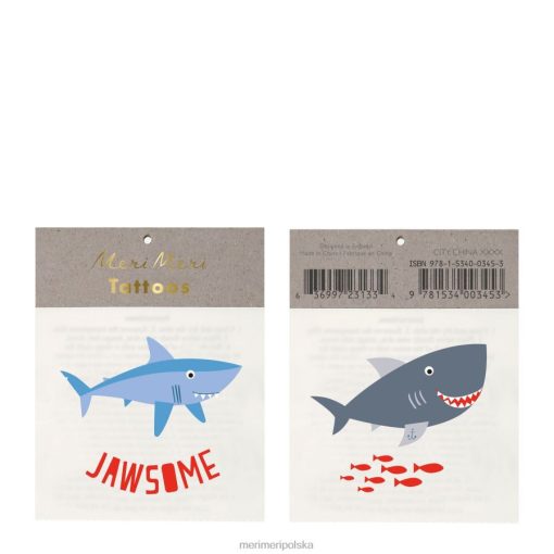 Te tymczasowe tatuaże z zębatym rekinem są genialne na letnie uroczystości. idealny na przyjęcia lub jako wesoły mały prezent.