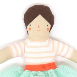 ta pięknie wykonana pościel w kształcie lalki jest idealna do przytulania cennych zabawek. zestaw, w eleganckiej torbie z organzy ściąganej sznurkiem, ułatwiającej przechowywanie, zawiera poduszkę, kołdrę i materac. wszystkie są wykonane z luksusowego aksamitu i miękkiej bawełny i ozdobione wspaniałymi frędzlami, pomponami i neonowymi szwami.