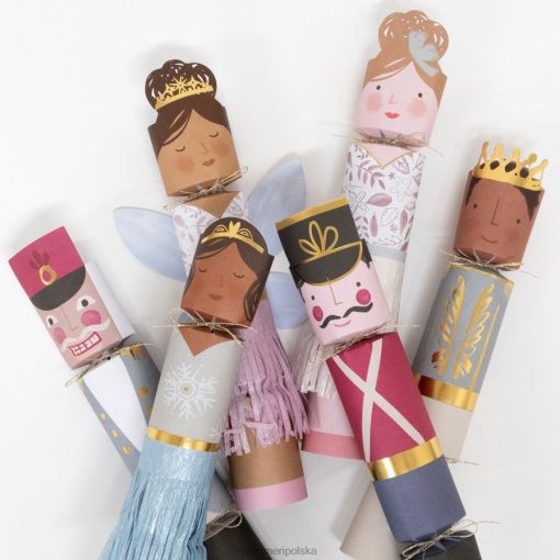 Dziadek do orzechów, klasyczna opowieść i balet bożonarodzeniowy, tworzy wspaniałe projekty artykułów na imprezę. te krakersy są czymś naprawdę wyjątkowym i dodadzą magicznego akcentu Twoim świątecznym uroczystościom. ten zestaw sześciu zawiera główne postacie Dziadka do Orzechów z mnóstwem zachwycających ozdób.