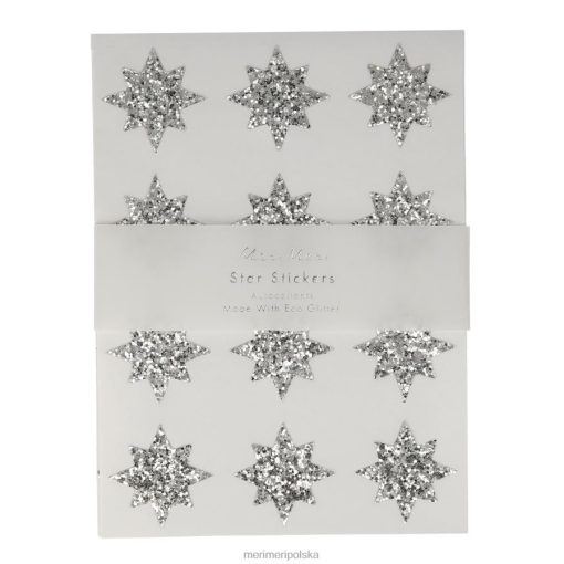 kolekcja wakacyjna MERI MERI naklejki brokatowe srebrne gwiazdki (x 8 arkuszy) 68RN6117