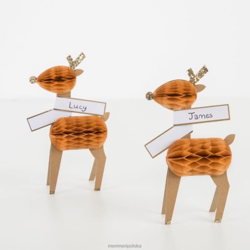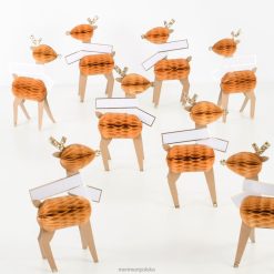 Pomóż swoim gościom znaleźć miejsca, dodając jednocześnie uroczego wyglądu Twojemu imprezowemu stołowi dzięki tym trójwymiarowym kartkom z reniferami w kształcie plastra miodu. urocza dekoracja, którą pokochają dzieci i dorośli.