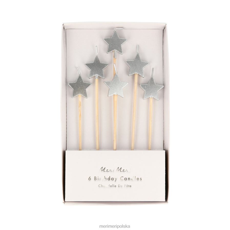 zaopatrzenie imprez MERI MERI świeczki srebrne gwiazdki (x 6) 68RN640