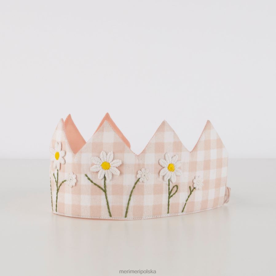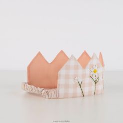 nie wszystkie korony muszą błyszczeć! ta cudowna różowa korona jest idealna dla kwiatowej wróżki, do noszenia na specjalne wydarzenie lub do codziennego przebierania. uwielbiamy odcień zgaszonego różu i modny nadruk w kratkę.