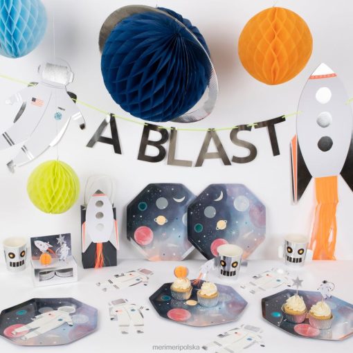 Przybliż się nowej galaktyce niesamowitych elementów imprezowych dzięki temu kosmicznemu zestawowi na imprezę. zawiera zastawę stołową, torby na przyjęcia i zestaw do babeczek dla 8 osób oraz girlandę z planetami w kształcie plastra miodu (która stanowi również niesamowitą dekorację sypialni dla dziecka mającego obsesję na punkcie przestrzeni po zakończeniu imprezy!)