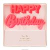 impreza nie jest imprezą, jeśli nie ma ciasta i świec! więc upewnij się, że Twoja uroczystość będzie niezapomnianym przeżyciem dzięki tej doskonałej różowej świecy z napisem „wszystkiego najlepszego” eleganckim, zawiniętym pismem. wielu szczęśliwych powrotów!
